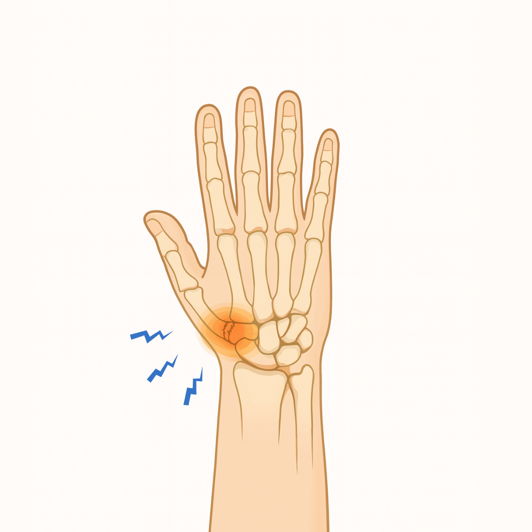 But the pain isn’t in your wrist or fingers. It’s right at the base of your thumb, where it meets your wrist.